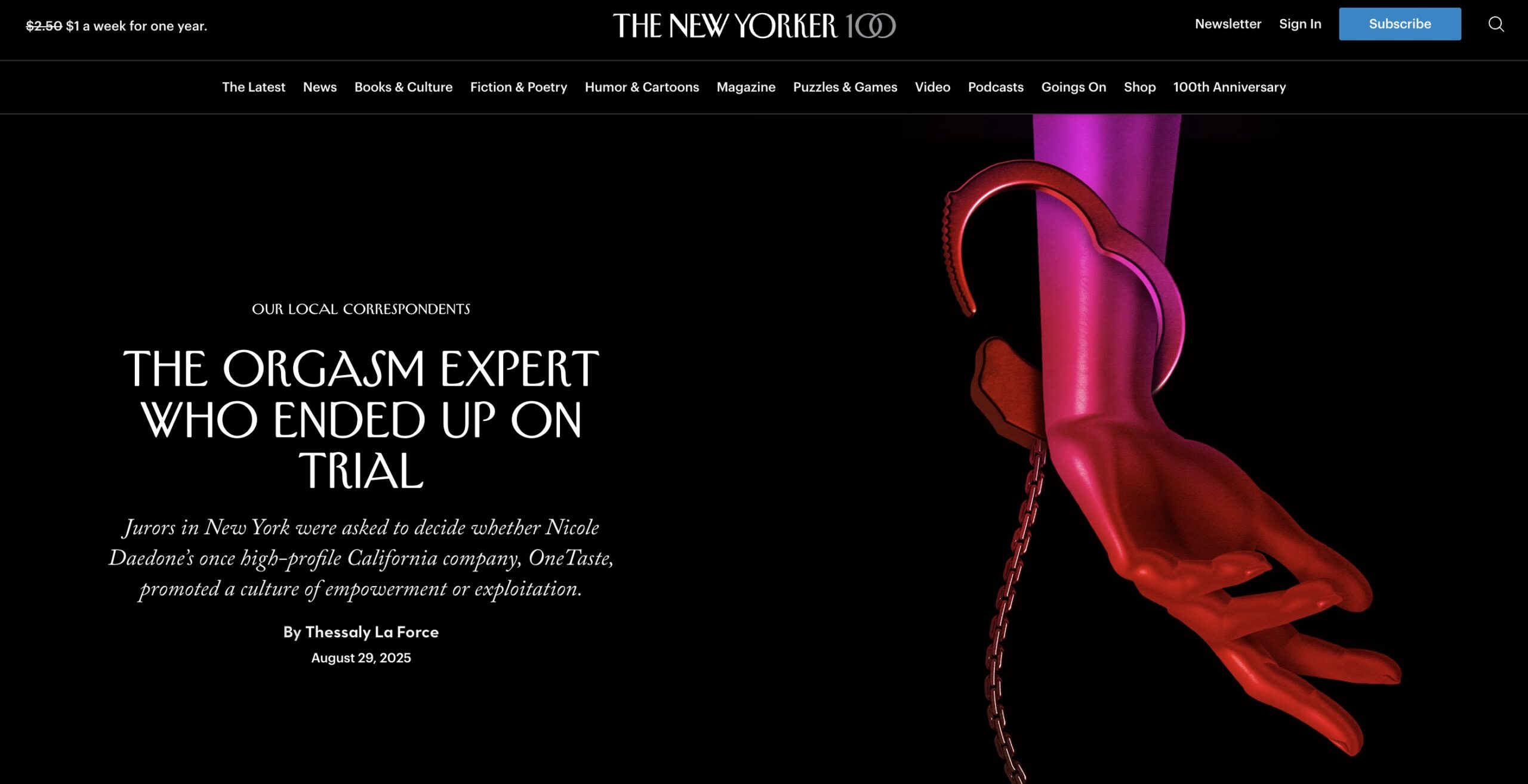 “Daedone was so gripped by the idea of deliberate orgasm that she ended up joining the Welcomed Consensus, a small commune founded in Northern California by a Vietnam veteran and hairdresser named R. J. Testerman, who had begun replicating Baranco’s pedagogy after taking classes at More University.”